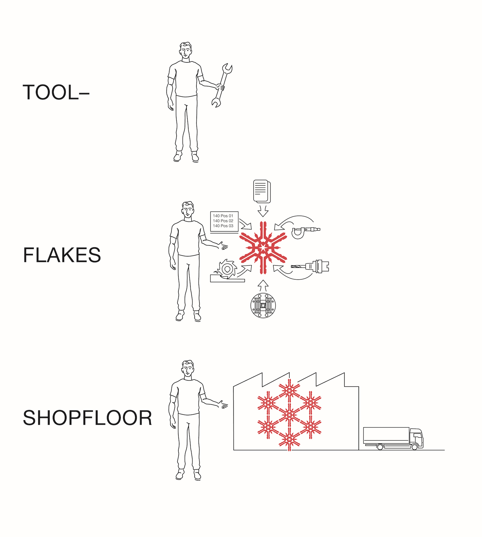 Durch die neuen Möglichkeiten der Digitalisierung und einer Reihe von Pilotprojekten entstand das gesamtheitliche System „toolflakes shopfloor system“, das sich an der Praxis orientiert. Stabil und sich permanent erneuernd ist es heute ein Instrument, das Effektivität und Kommunikation in ihrem Betrieb nachhaltig verbessert.